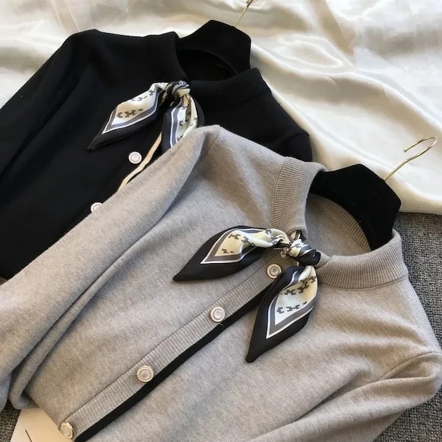 【商品説明】 スカーフ付きのニットトップスです。 カーディガン風のデザインになっています。 スカーフは取り外し可能の為、お持ちのスカーフをつけていただいても素敵にお召しいただけます。 【サイズ】 着丈53cm. 肩幅35cm. 袖丈56cm 身幅46cm 測定方法によって+ー3cm程度の誤差がございます。ご了承ください。 M2Rでは海外から輸入し販売しております。 小さなほつれ、織り糸の混ざりによる小さなシミ、配送時のたたみシワ、特殊加工における匂い、プリントのズレ、縫製が雑な場合が生じることもございます。 また色合いはモニター環境により若干の誤差がございます。 こちらのアイテムは一部予約商品となります ○予約商品の配送はご注文から20日~40日前後かかります○ ※各商品の入荷時期により配送日程が前後致します。 ※商品が確保できない場合は速やかに返金致します。 ※ご注文頂いた全ての商品が揃ってからの発送となります。 ※即納品等の他の商品との同時注文はおすすめしておりません。 ※予約商品にお届け希望日を記載頂いてもご希望に沿えません事をご了承ください。