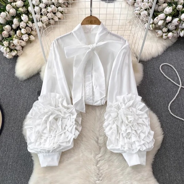 【商品説明】 袖部分には立体的なお花のデザインが施され、 首元は上品なボウタイリボンが着こなしに華を添えます。 着るだけで華やかな雰囲気になる一枚です。 【平置きサイズ】 着丈57cm 肩幅39cm 袖丈70cm サイズ採寸は平置きです。測定方法によって+ー3cm程度の誤差がございます。ご了承ください。 M2Rでは海外から輸入し販売しております。 小さなほつれ、織り糸の混ざりによる小さなシミ、配送時のたたみシワ、特殊加工における匂い、プリントのズレ、縫製が雑な場合が生じることもございます。 また色合いはモニター環境により若干の誤差がございます。 ※お客様のご負担となる商品の配達にかかる送料を軽減するために、コンパクト包装を心がけております。折りジワがどうしても生じます、気になる場合はお届け後アイロンがけをおすすめします。 こちらの一部アイテムは予約商品となります ○予約商品の配送はご注文から14日~40日前後かかります○ ※各商品の入荷時期により配送日程が前後致します。 ※商品が確保できない場合は速やかに返金致します。 ※ご注文頂いた全ての商品が揃ってからの発送となります。 ※即納品等の他の商品との同時注文はおすすめしておりません。 ※予約商品にお届け希望日を記載頂いてもご希望に沿えません事をご了承ください。