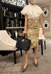 ジャガード織 花柄ペンシルハイウエストスカート