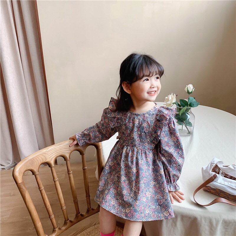 肩フリルが、とっても可愛いリバティー長袖ワンピースです。