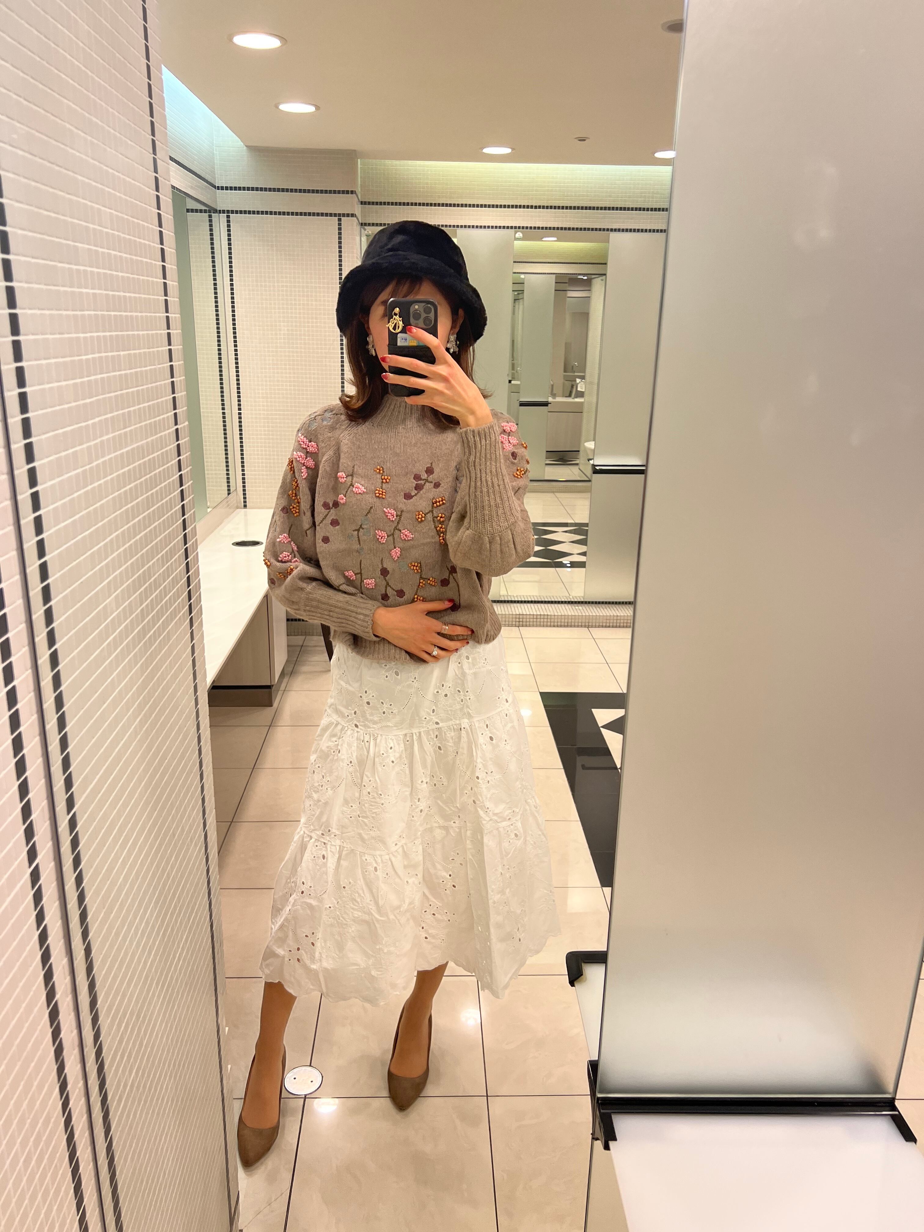 ビーズのデザインがとても可愛いランタンスリーブのざっくりニットです。
