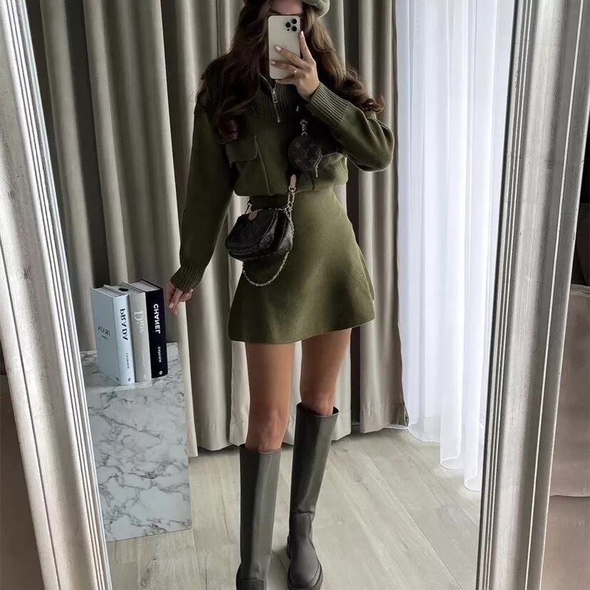 ポケット付きのトップスとAラインに広がるミニスカートの2点セット❤︎
