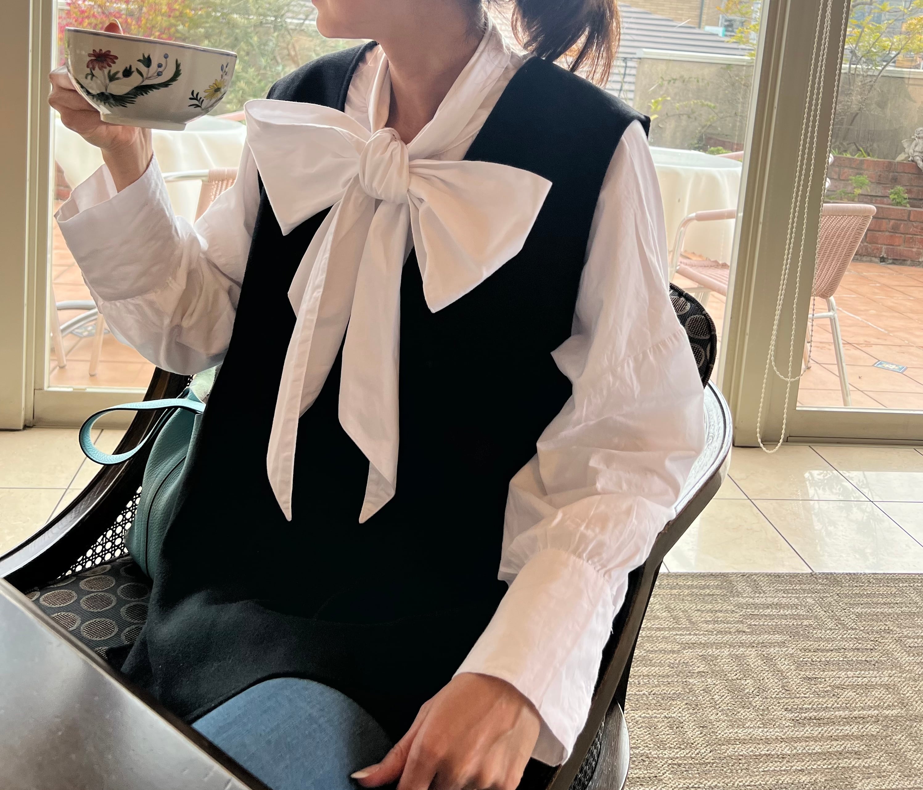 タートルネックや、ブラウスなどと合わせて着ていただいても可愛く着ていただけます・.。*†*。.・