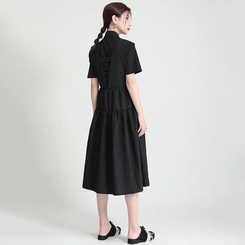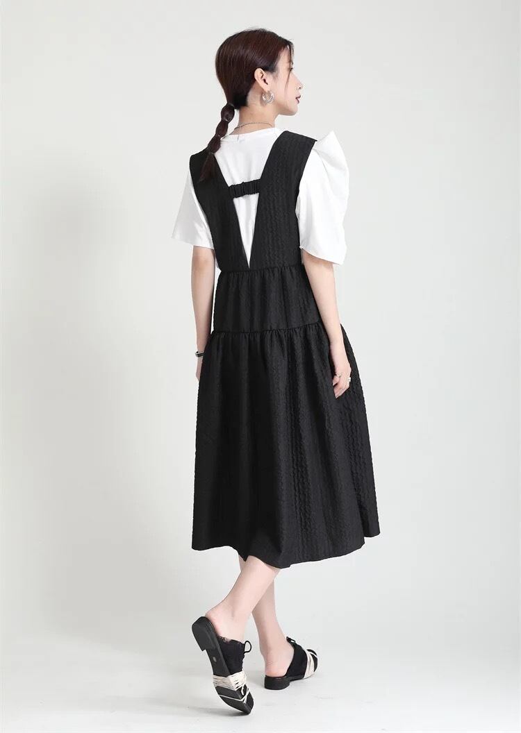シャープなVネックシルエットのジャンパースカート❤︎インナーにタートルネックやTシャツを合わせるだけでとてもオシャレ感が出るスタイルに❤︎