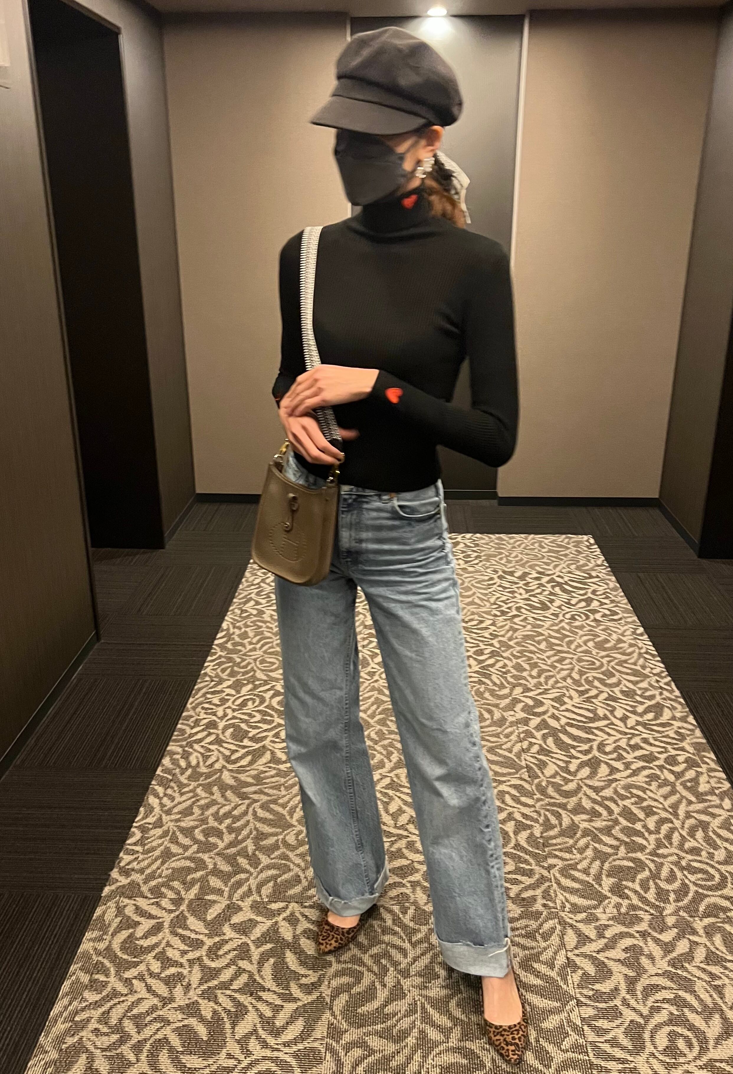リブタートルネックに可愛いワンポイントで、オシャレ上級者♪
